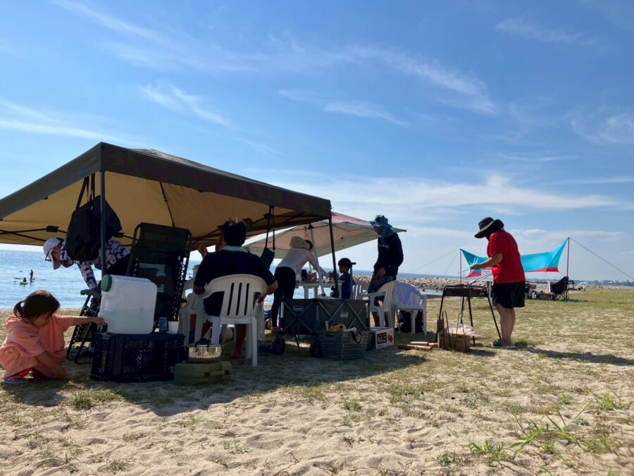 海が目の前ということで、海水浴&BBQを開催しました!!